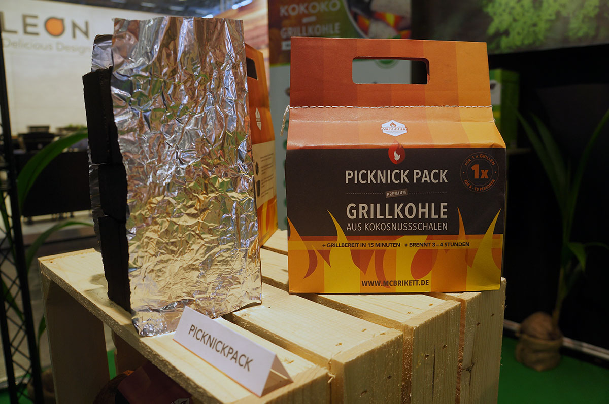 McBrikett stellte in diesem Jahr die neue japanische Grillkohle „Binchotan White Coal“ aus, die zukünftig das Kohlesortiment erweitern soll. Diese Luxuskohle wird tatsächlich in einem Samt-Säckchen ausgeliefert. Spannender aber das Thema „Herrenhandtasche“, welches eine Art Picknickkorb ist inkl. Kohle, Anzünder und Alufolie für eine Art Anzündkamin. Weitere Infos findest Du hier: www.mcbrikett.de.