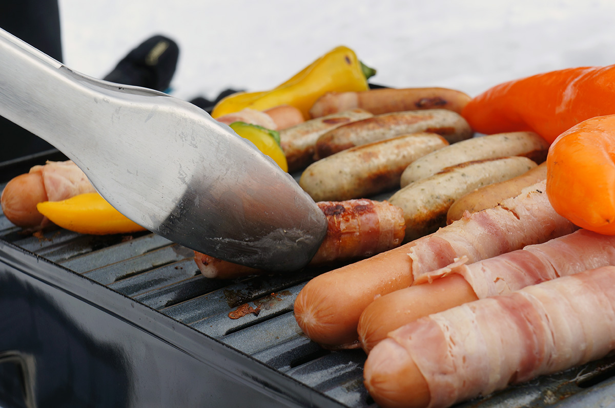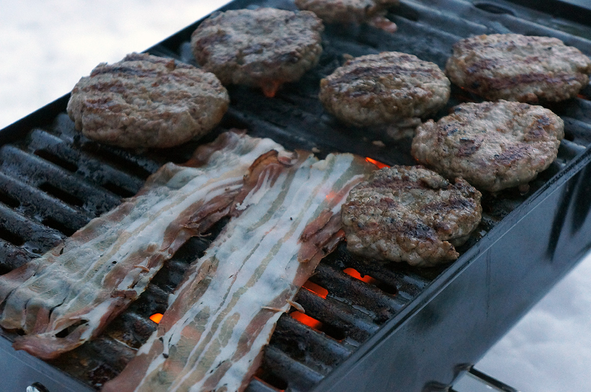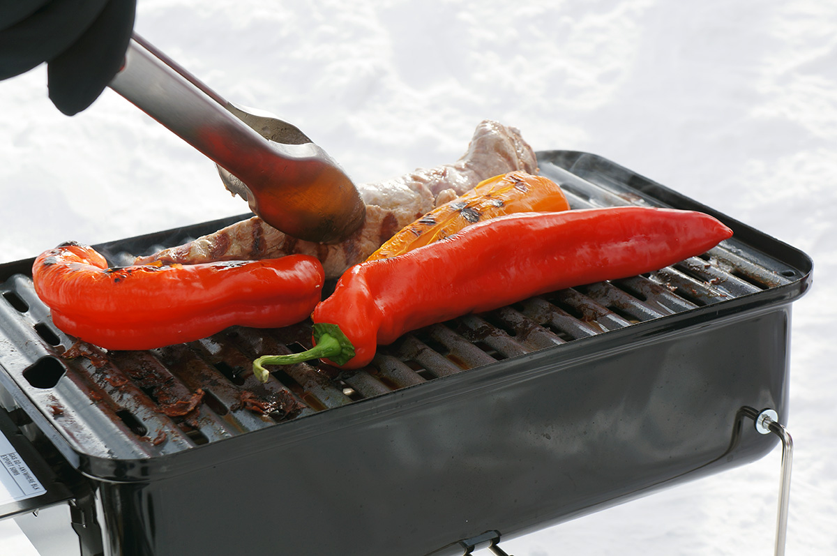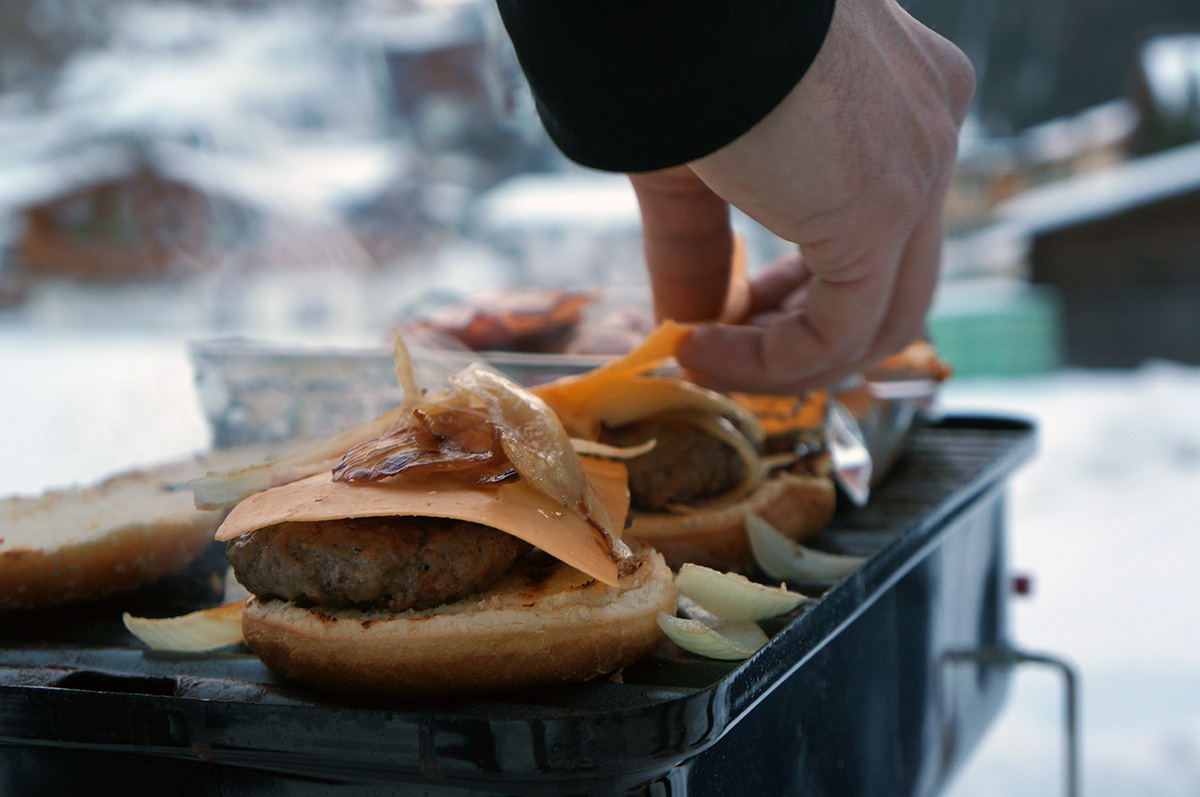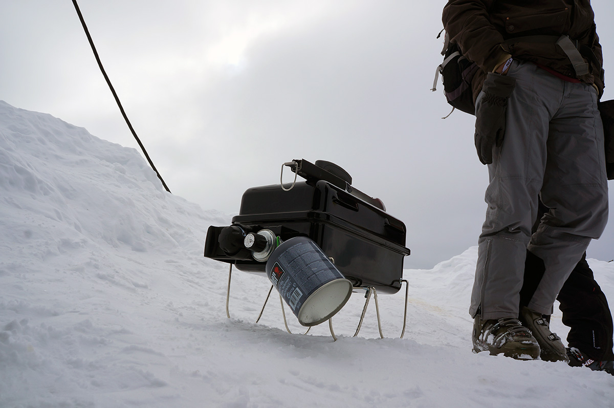 Um die Leistung und Effektivität des Weber-Go Anywhere auch beurteilen zu können, hab ich ihn prompt beim letzten Snowboardurlaub mitgenommen. Praktischerweise kann man diesen Grill in einer extra erhältlichen Tasche packen, sodass er wie ein normales Gepäckstück fungiert. Zange, Gasflasche und Co. passen ebenfalls dort hinein. Also alles eingepackt und mitgenommen – der Gletscher wartete auf ein heißes Experiment.