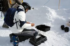 Angekommen auf über 3.200 Höhenmeter hat sich der Zusammenbau als extrem leicht erwiesen. Tasche auf, Füße nach rechts und links ausklappen, Gasflasche dranschrauben und schon kann aufgeheizt werden. Nach nur wenigen Minuten ist eine deutliche Hitze spürbar und das Zeichen dafür, Fleisch auf das Rost zu legen. Ich habe keine kulinarischen Experimente gewagt, so gab es also nur Würstchen, bisschen Grillgemüse und ein ganzes Schweinefilet. Als erste neugierige Blicke andere Skifahrer uns erst belächelten, wurde daraus schnell ein neidischer Blick, als die heißen Bratwürstchen in den Brötchen landeten und wir es uns am Gletscher schmecken ließen.